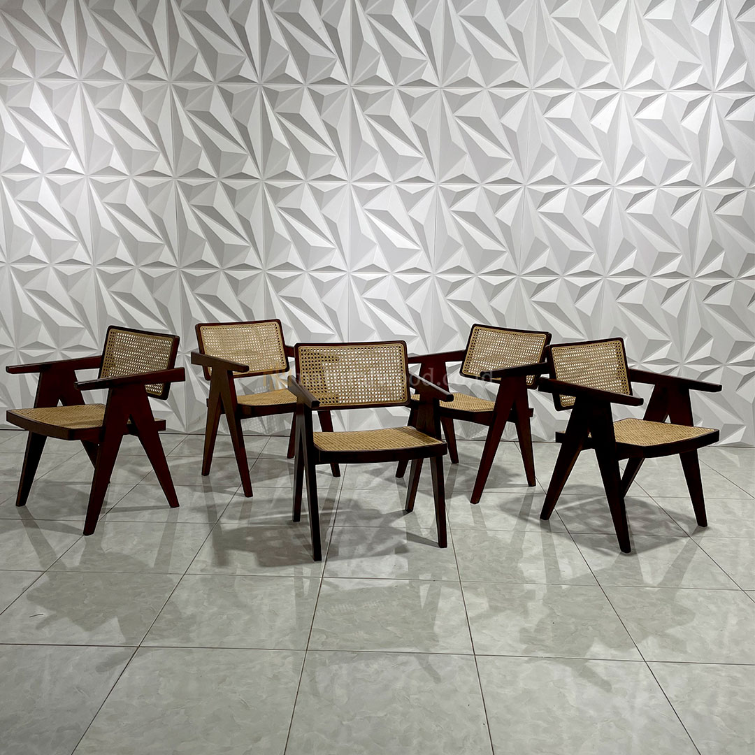 Sebagai produk Furniture Jepara, kursi ini dibuat oleh pengrajin berpengalaman dengan detail pengerjaan yang halus dan finishing natural yang memperlihatkan serat kayu jati yang indah. Anyaman rattan yang kokoh menambah kenyamanan sekaligus memberikan sirkulasi duduk yang baik, sehingga tidak panas meskipun digunakan dalam waktu lama.