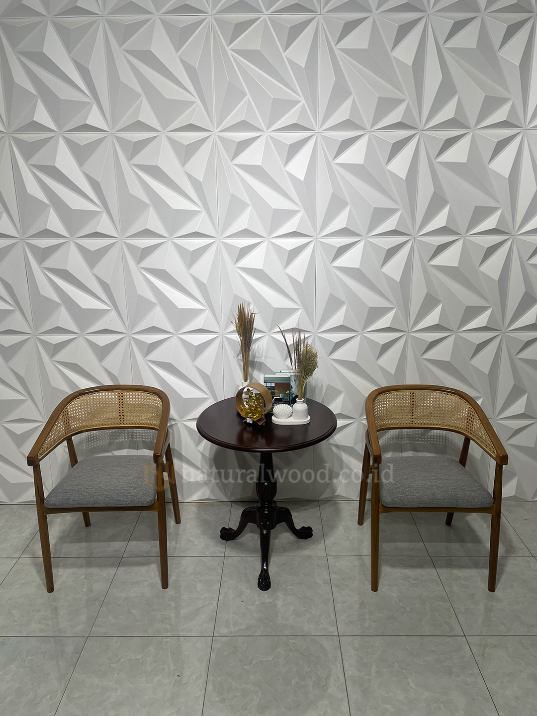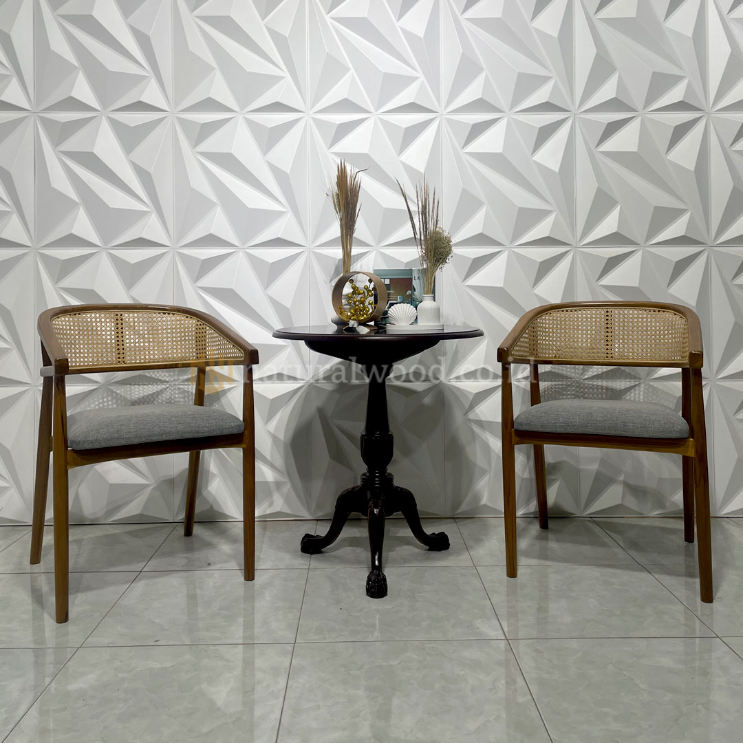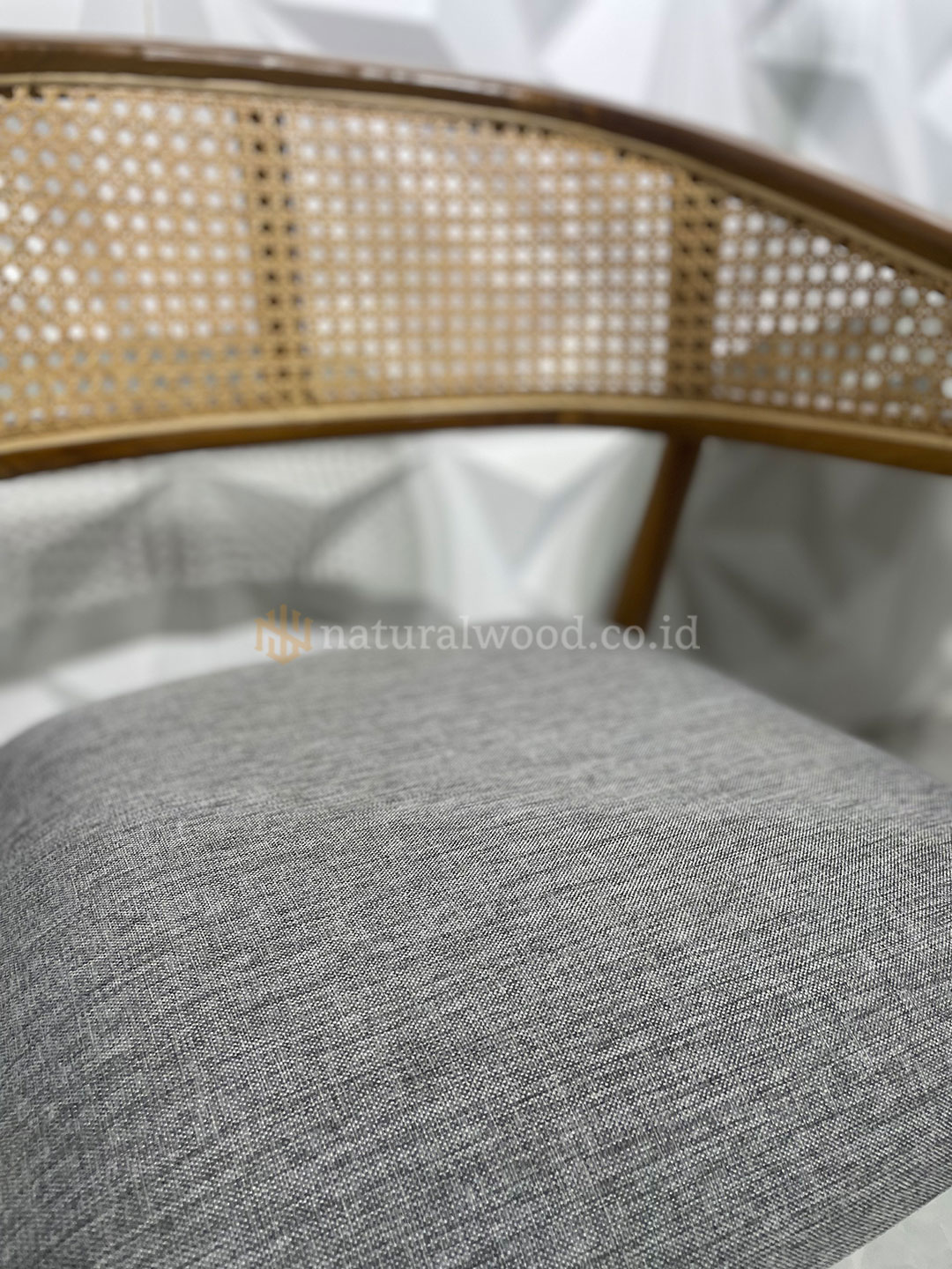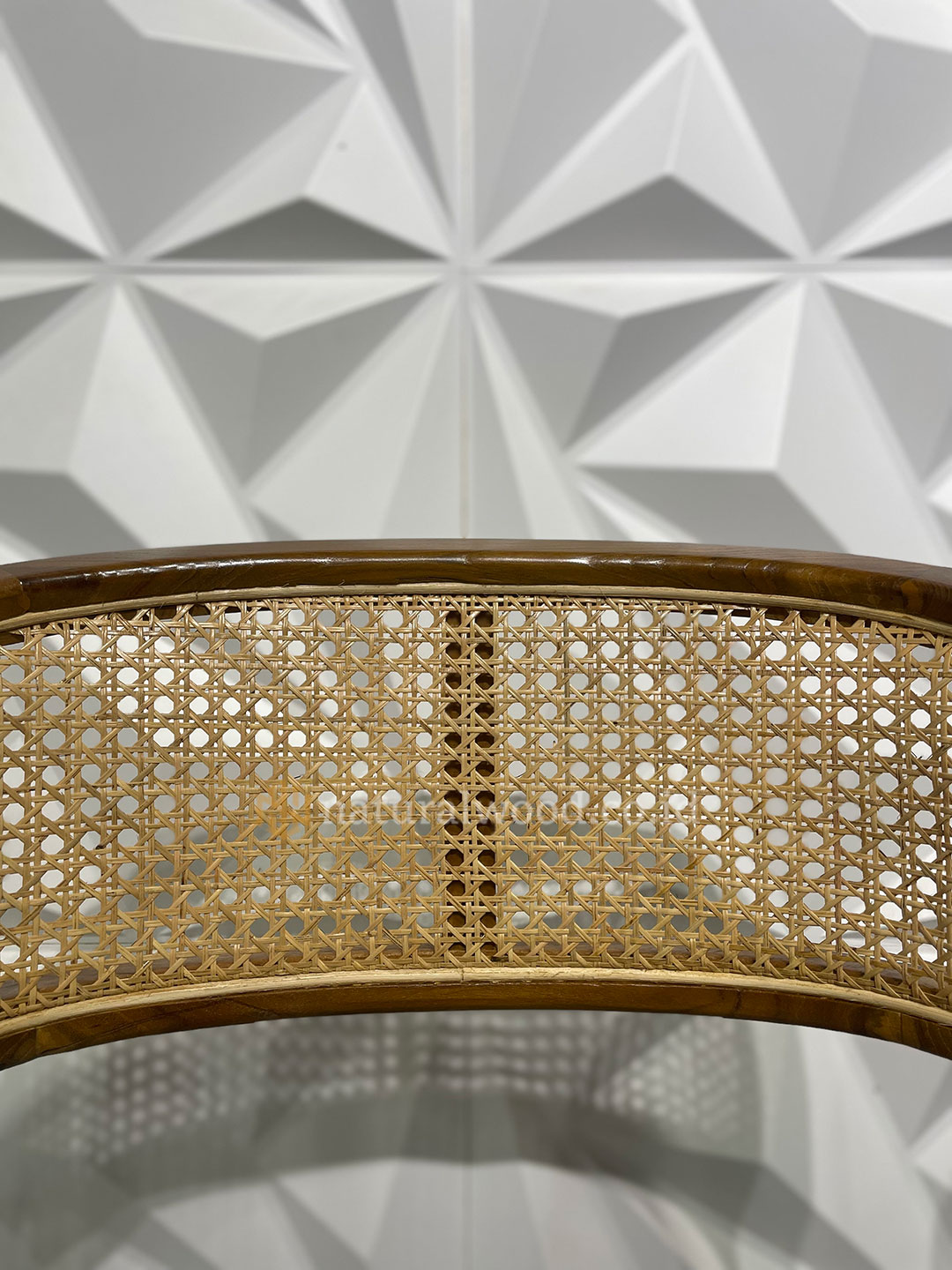 Setiap detail kursi dikerjakan dengan ketelitian tinggi, mulai dari rangka kayu jati yang kokoh hingga rotan anyaman yang rapi dan presisi. Finishing kayu natural menonjolkan keindahan serat kayu jati sekaligus memberikan perlindungan terhadap kelembapan dan serangan rayap. Desain ergonomis pada dudukan dan sandaran memberikan kenyamanan optimal, menjadikan kursi ini sangat cocok digunakan dalam waktu lama oleh pengunjung cafe.