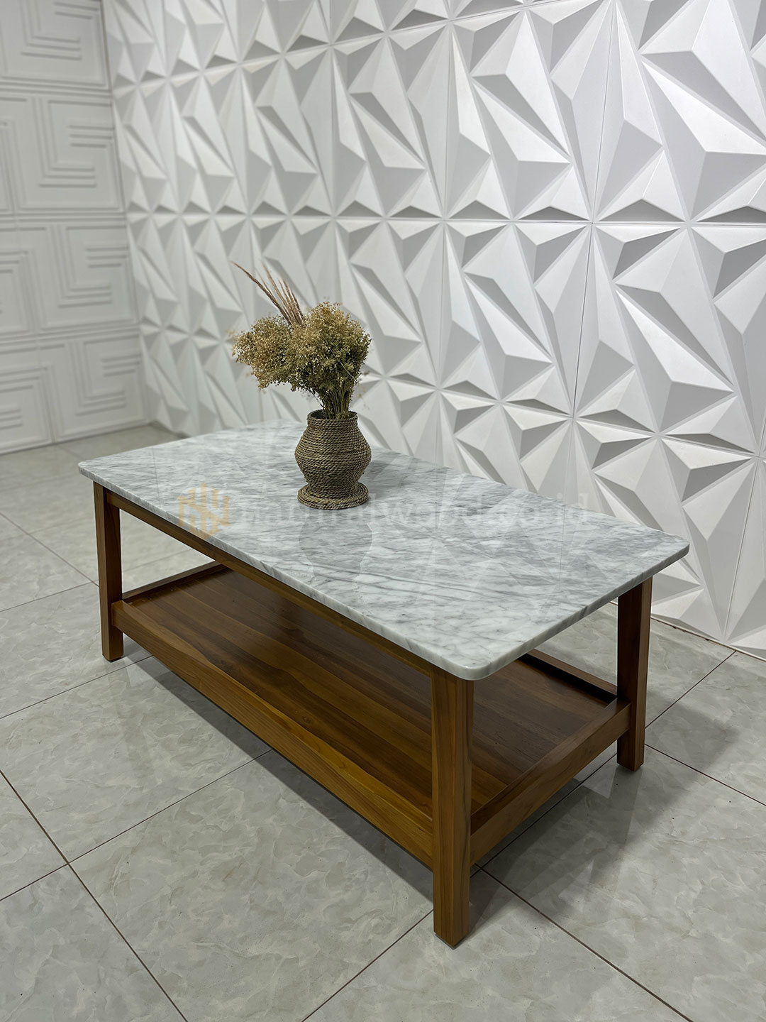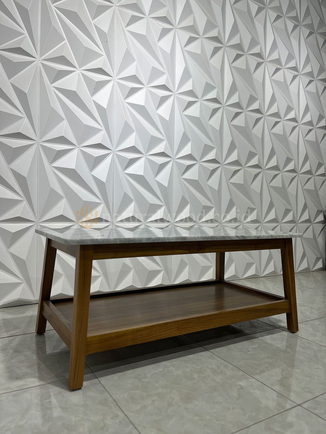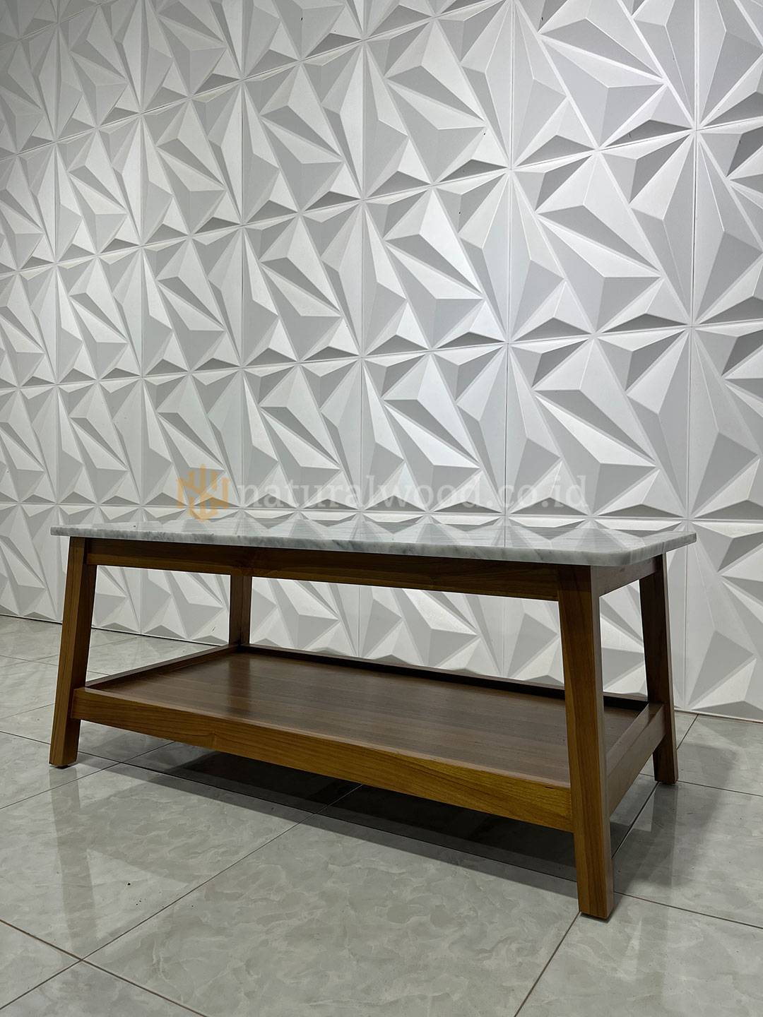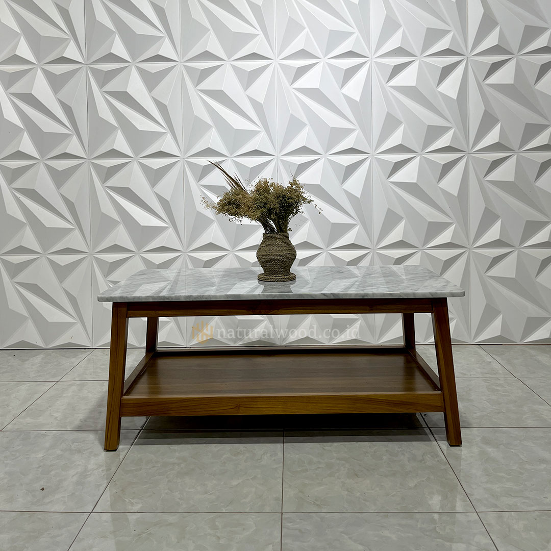 Keunggulan lainnya, meja ini dibuat dengan standar produksi presisi sehingga setiap detailnya dikerjakan dengan rapi—mulai dari sudut, kaki meja, hingga permukaan top table yang halus. Dengan desain yang fungsional, meja ini tidak hanya memperindah ruangan tetapi juga nyaman digunakan untuk meletakkan minuman, dekorasi, maupun keperluan ruang tamu lainnya.