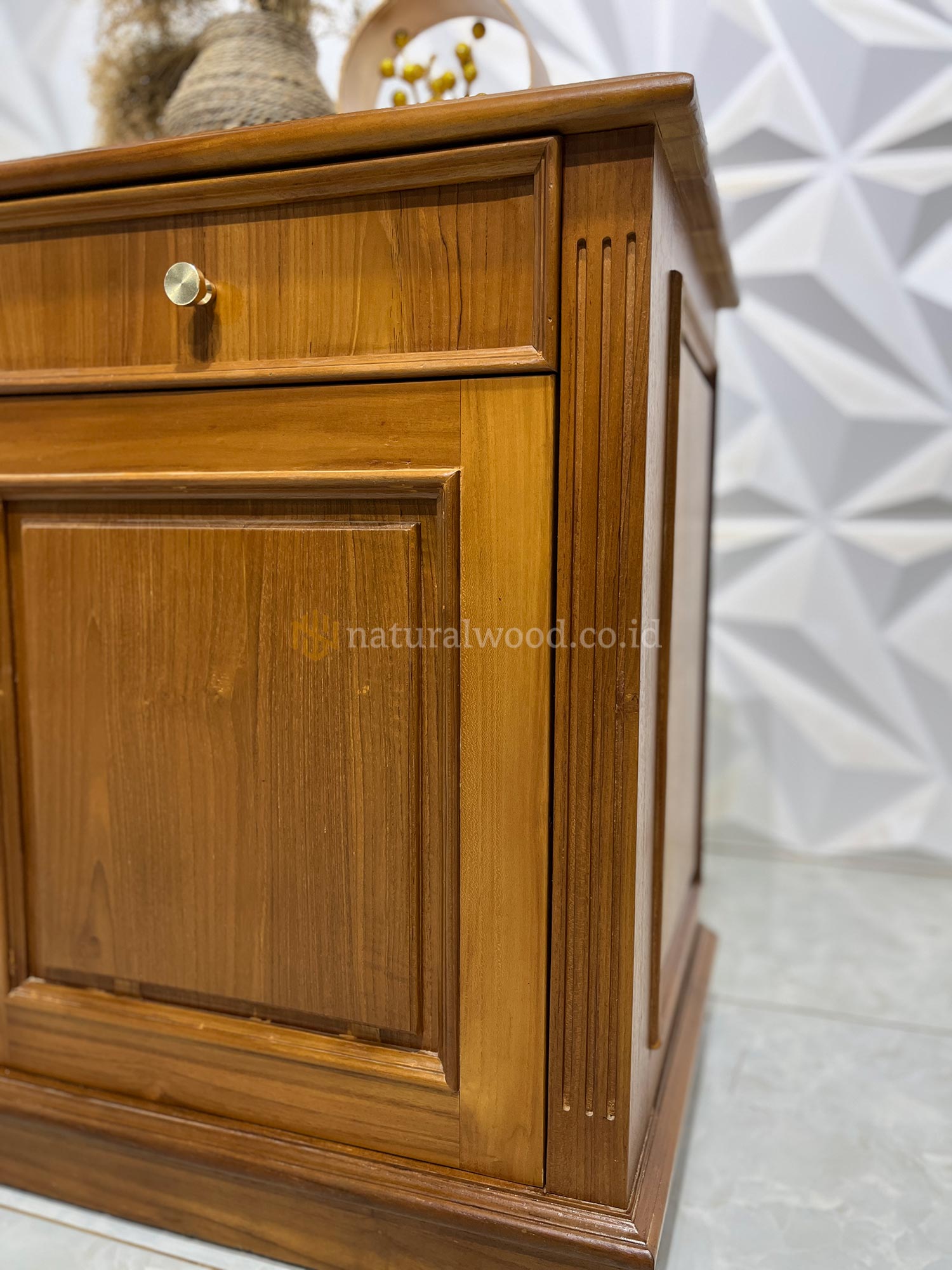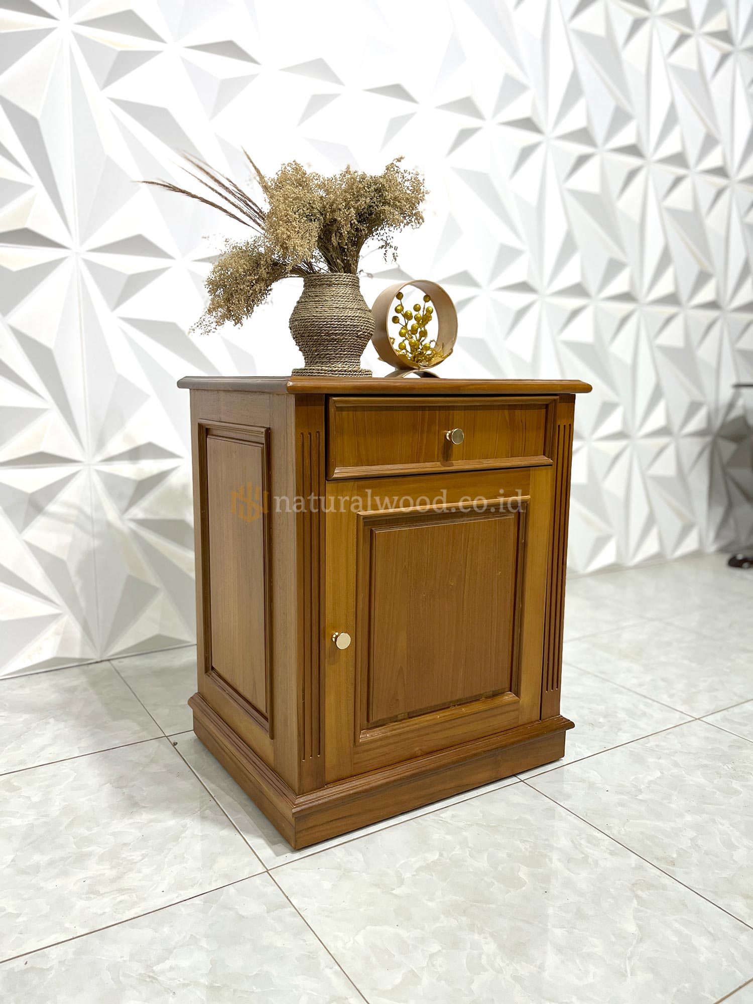 Nakas Kayu Jati Klasik Minimalis dari Furniture Jepara by Natural Wood merupakan pilihan ideal untuk melengkapi kamar tidur dengan sentuhan elegan, fungsional, dan tahan lama. Mengusung desain klasik minimalis, nakas ini memadukan keindahan garis sederhana dengan karakter mewah khas kayu jati solid. Serat kayu yang halus dan natural memberikan tampilan hangat sekaligus menambah nilai estetika pada ruangan.