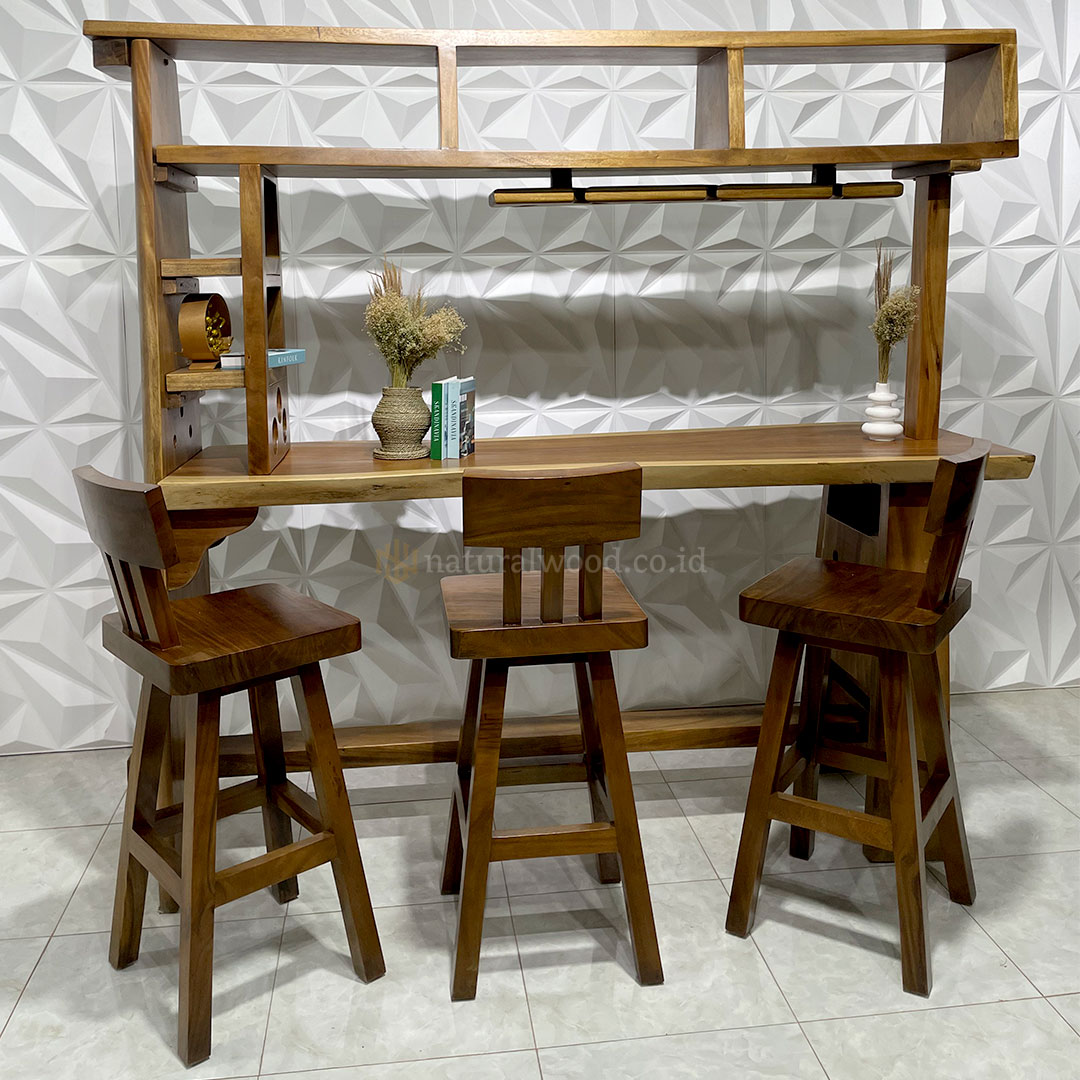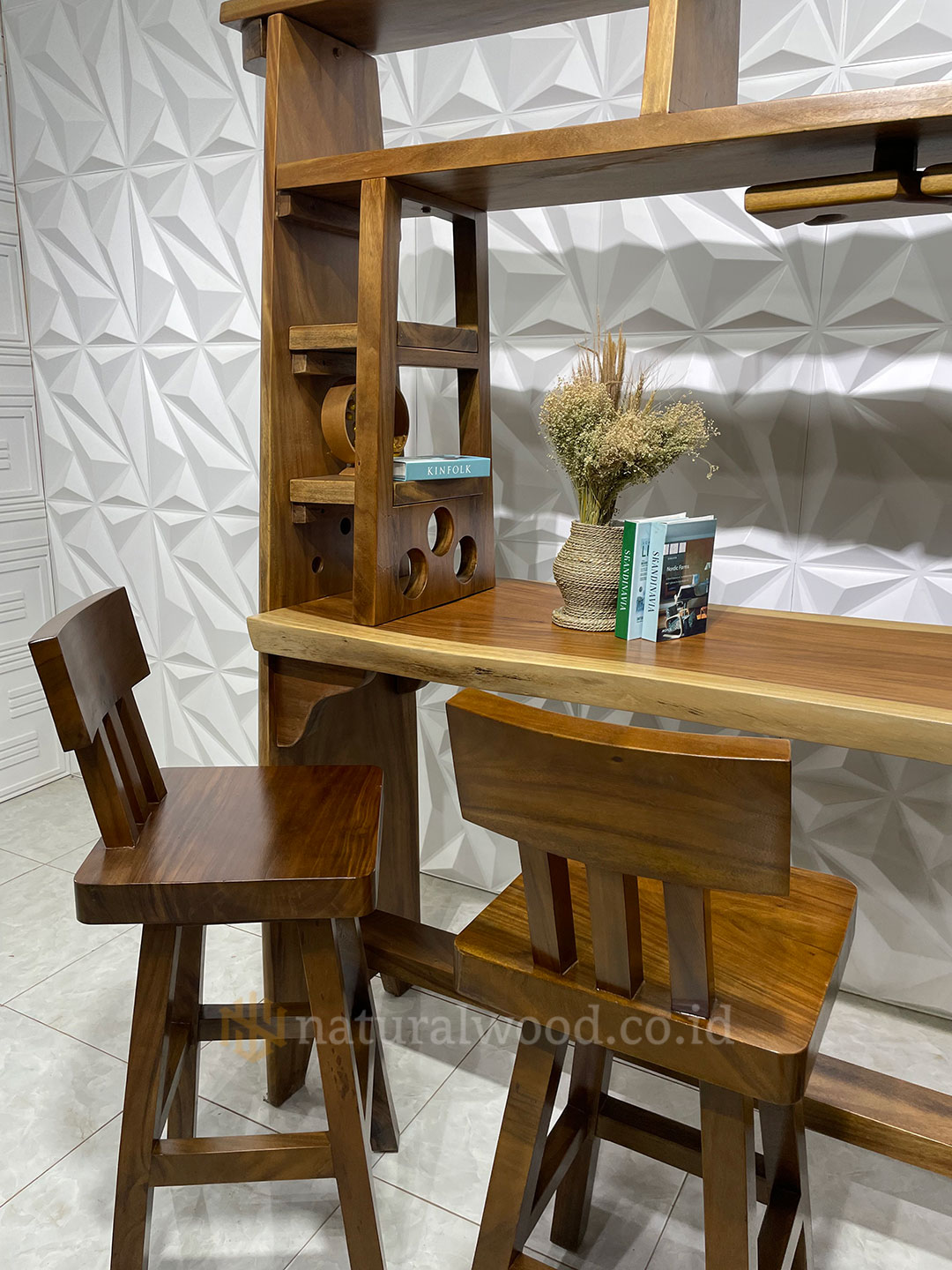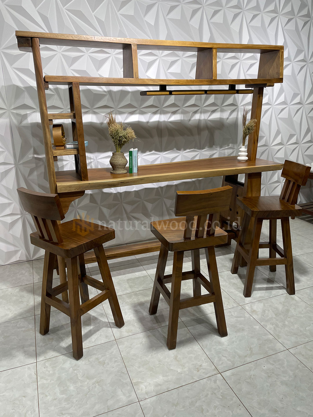 Set Meja Bar Kayu Trembesi Minimalis Natural