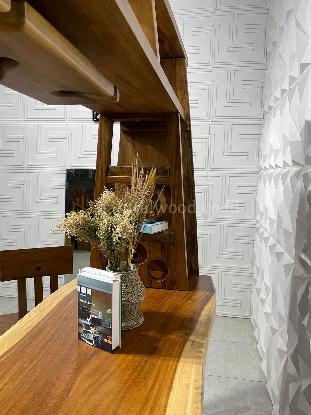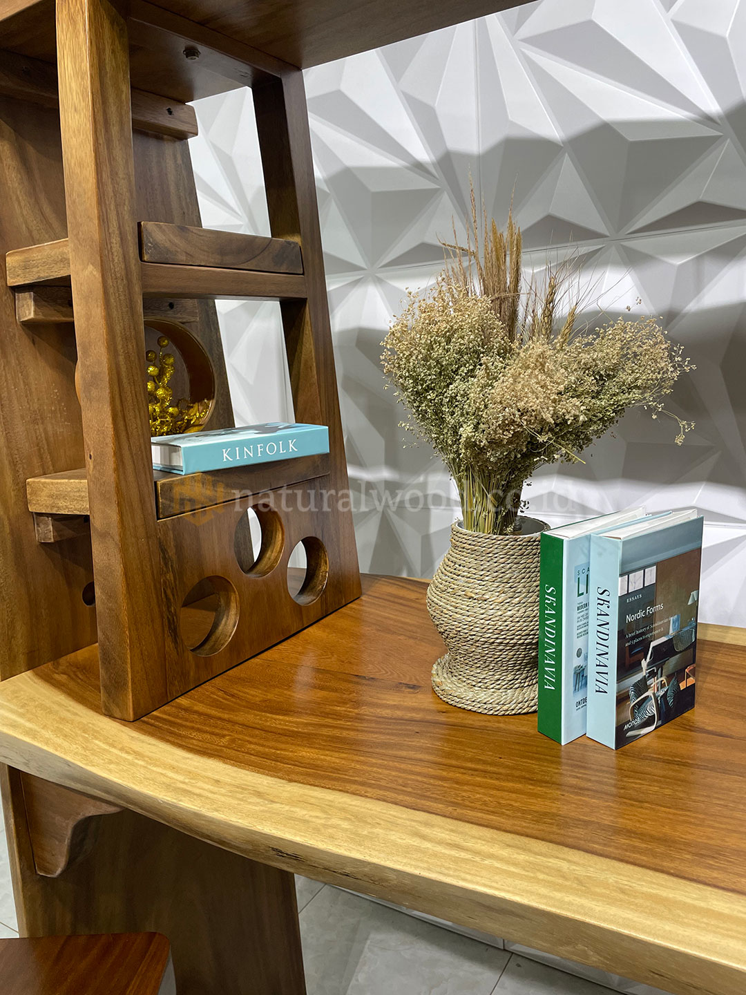 Bahan Kayu Trembesi Solid – kuat, tahan lama, dan memiliki motif serat khas yang sangat artistik.