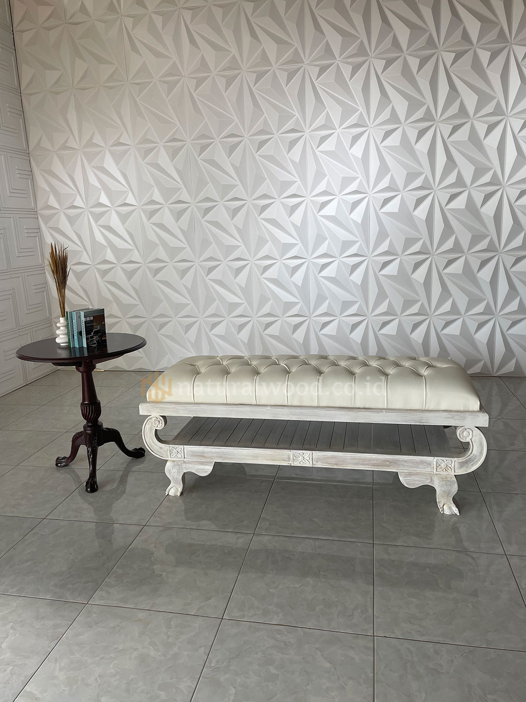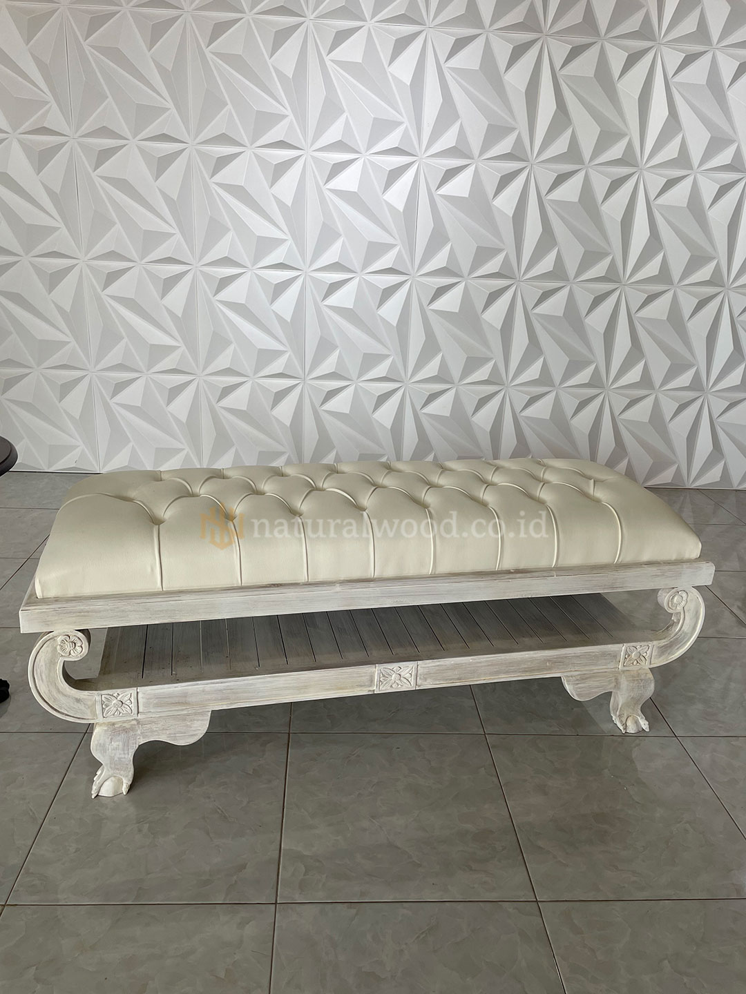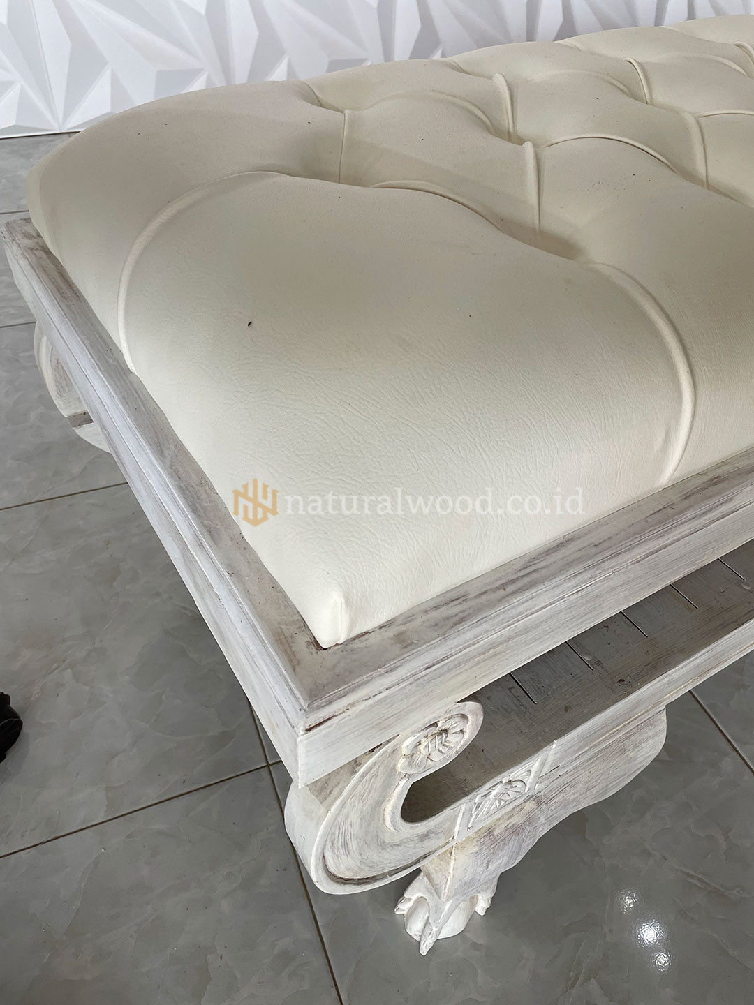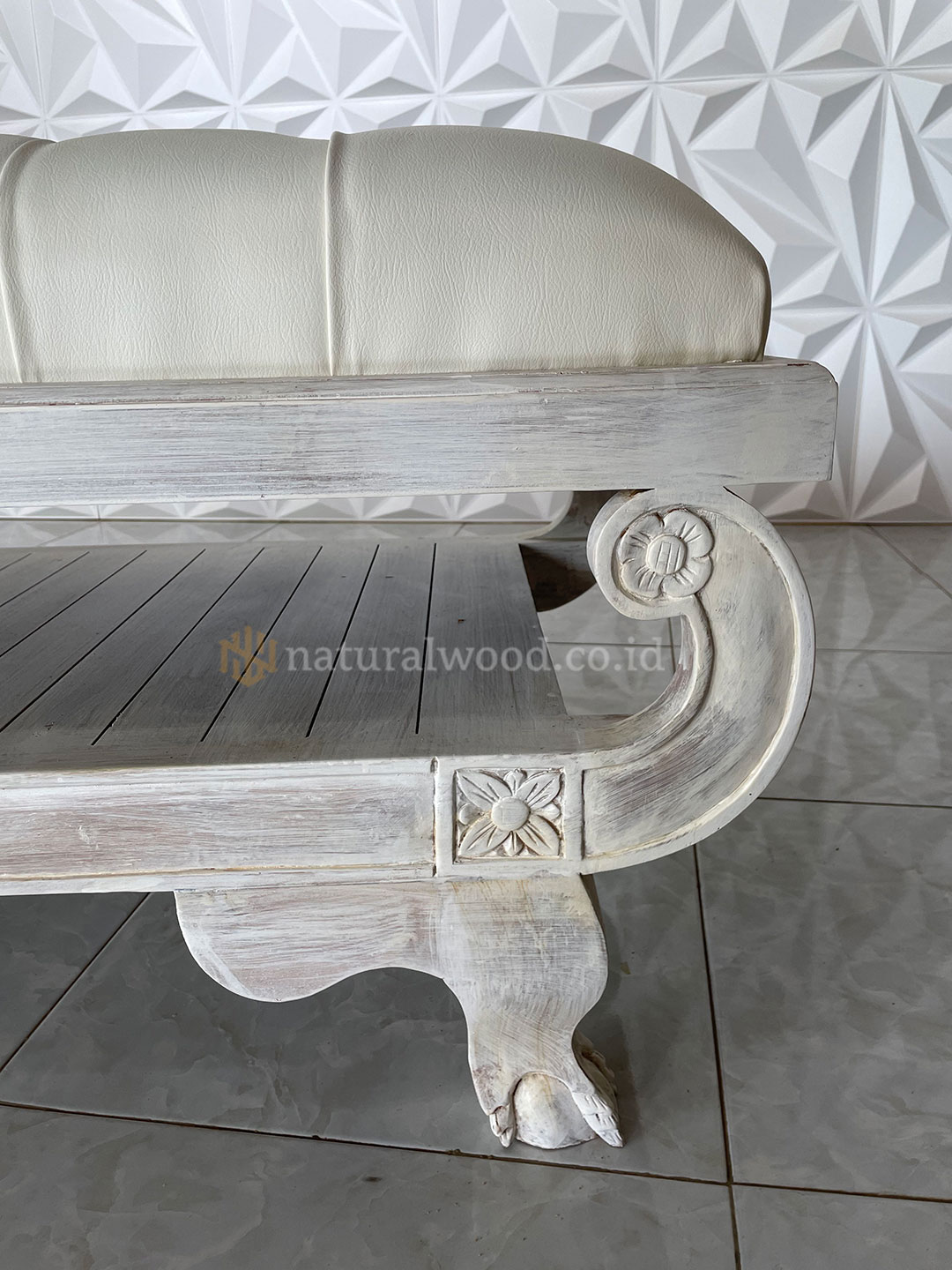 Desain klasik pada Sofa Bangku Kayu Jati Klasik tampil elegan dengan lekukan halus dan proporsi yang seimbang. Finishing kayu natural mempertegas warna alami kayu jati, menjadikan tampilannya semakin eksklusif dan tidak mudah bocor oleh waktu. Bantalan dudukan dibuat empuk dan nyaman, sehingga mendukung aktivitas bersantai bersama keluarga maupun menerima tamu.