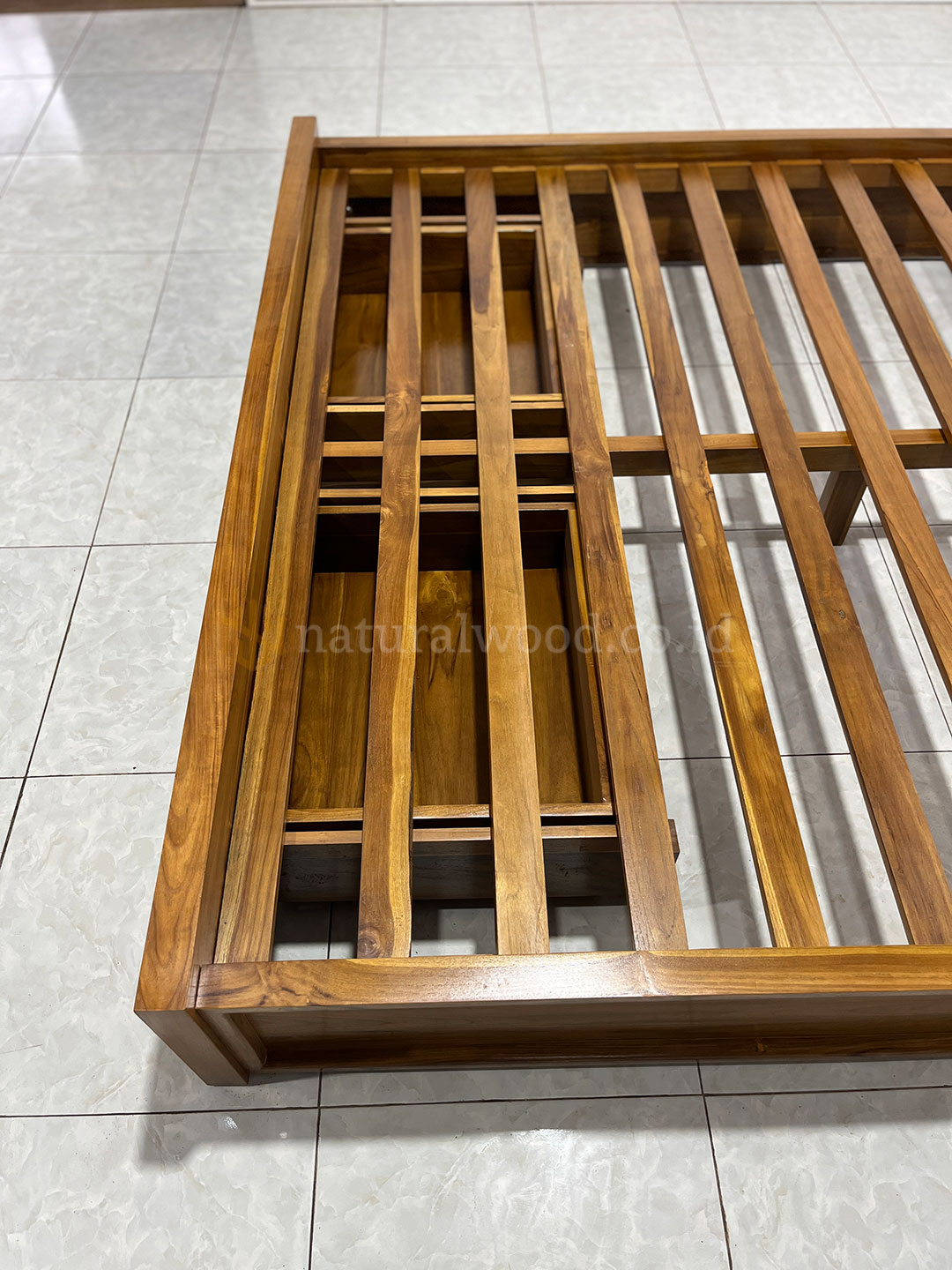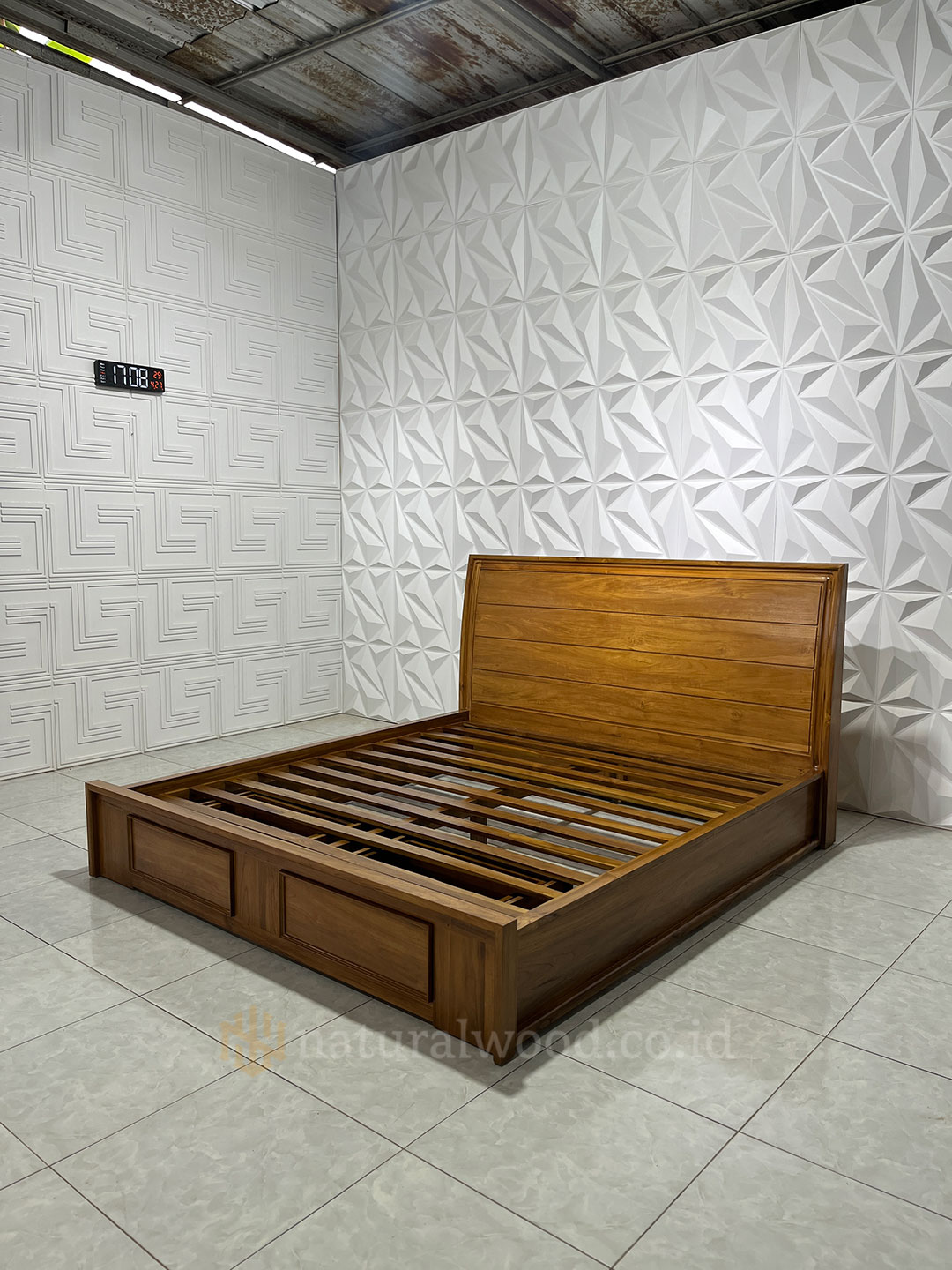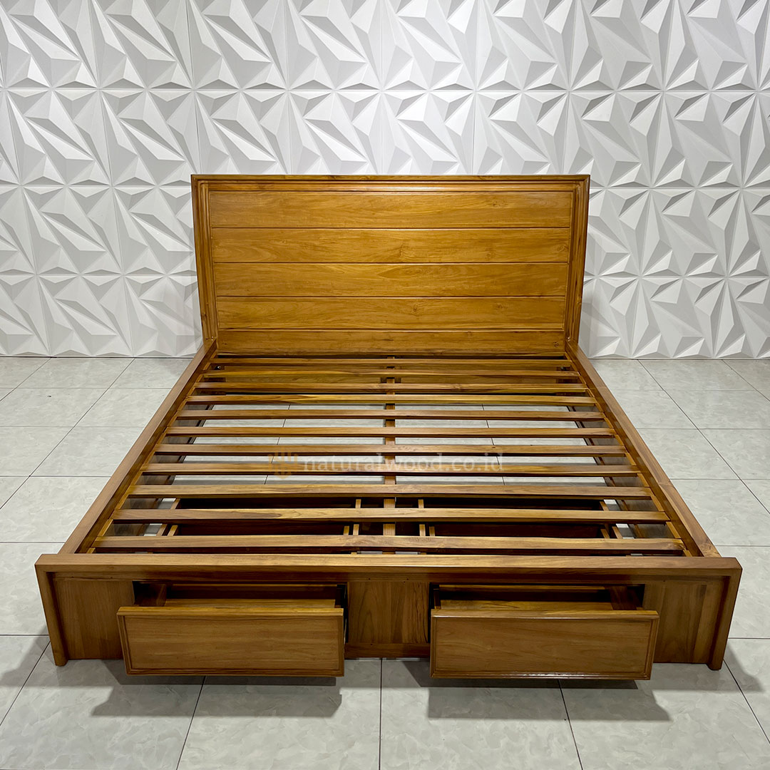 Sebagai produk Natural Wood, tempat tidur ini diproses dengan standar craftsmanship tinggi, menjaga keaslian serat kayu jati yang indah serta memberikan nuansa hangat pada ruangan. Selain itu, desainnya yang fungsional juga memungkinkan proses perawatan yang mudah dan tahan lama.